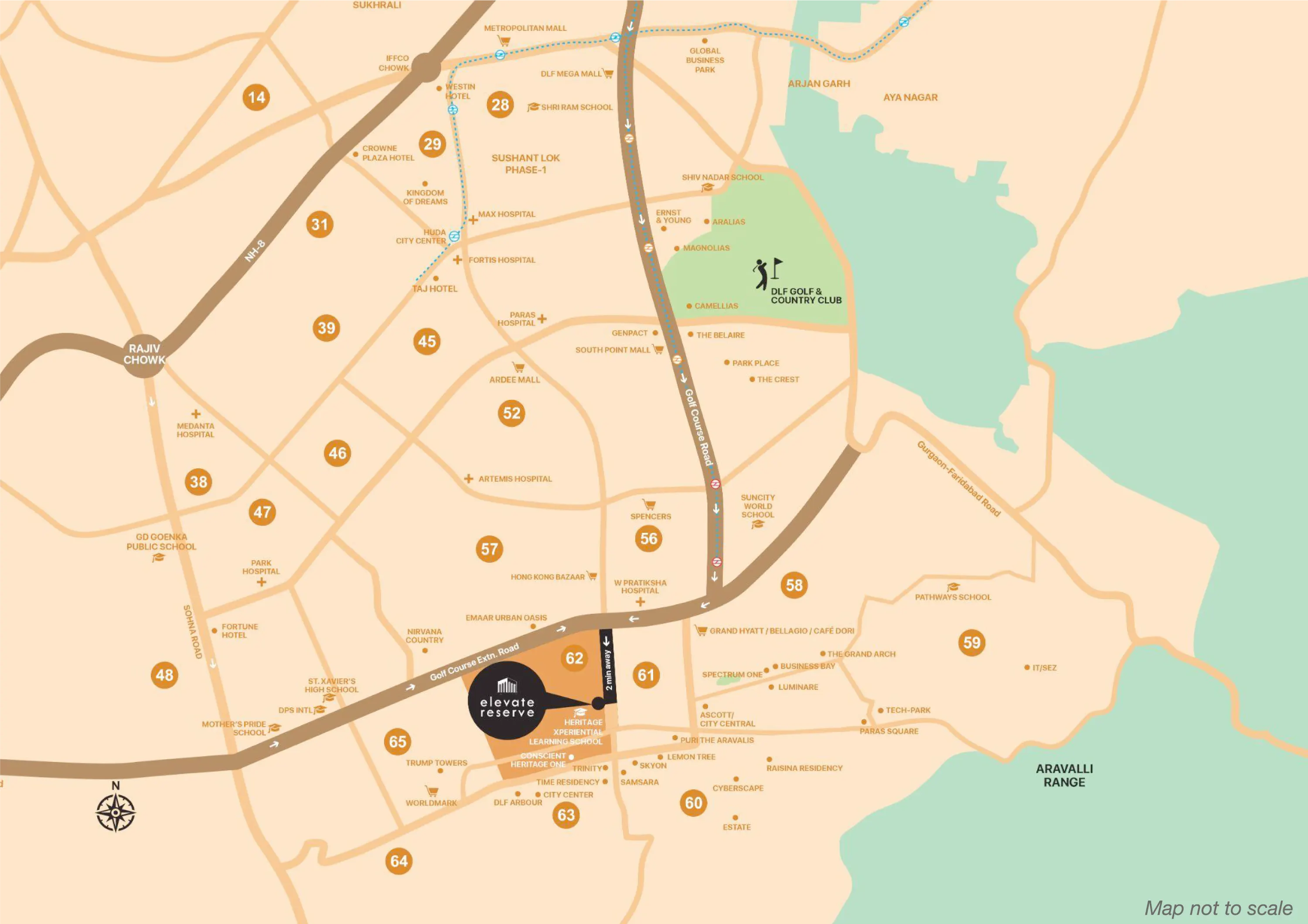 Elevate Reserve, located in Sector 62, is in the heart of one of Gurgaon’s most prime real estate vectors. Surrounded by established and planned residential and commercial developments, Elevate Reserve enjoys superior connectivity through Golf Course Extension Road to Golf Course Road, Sohna Road and NH-8.