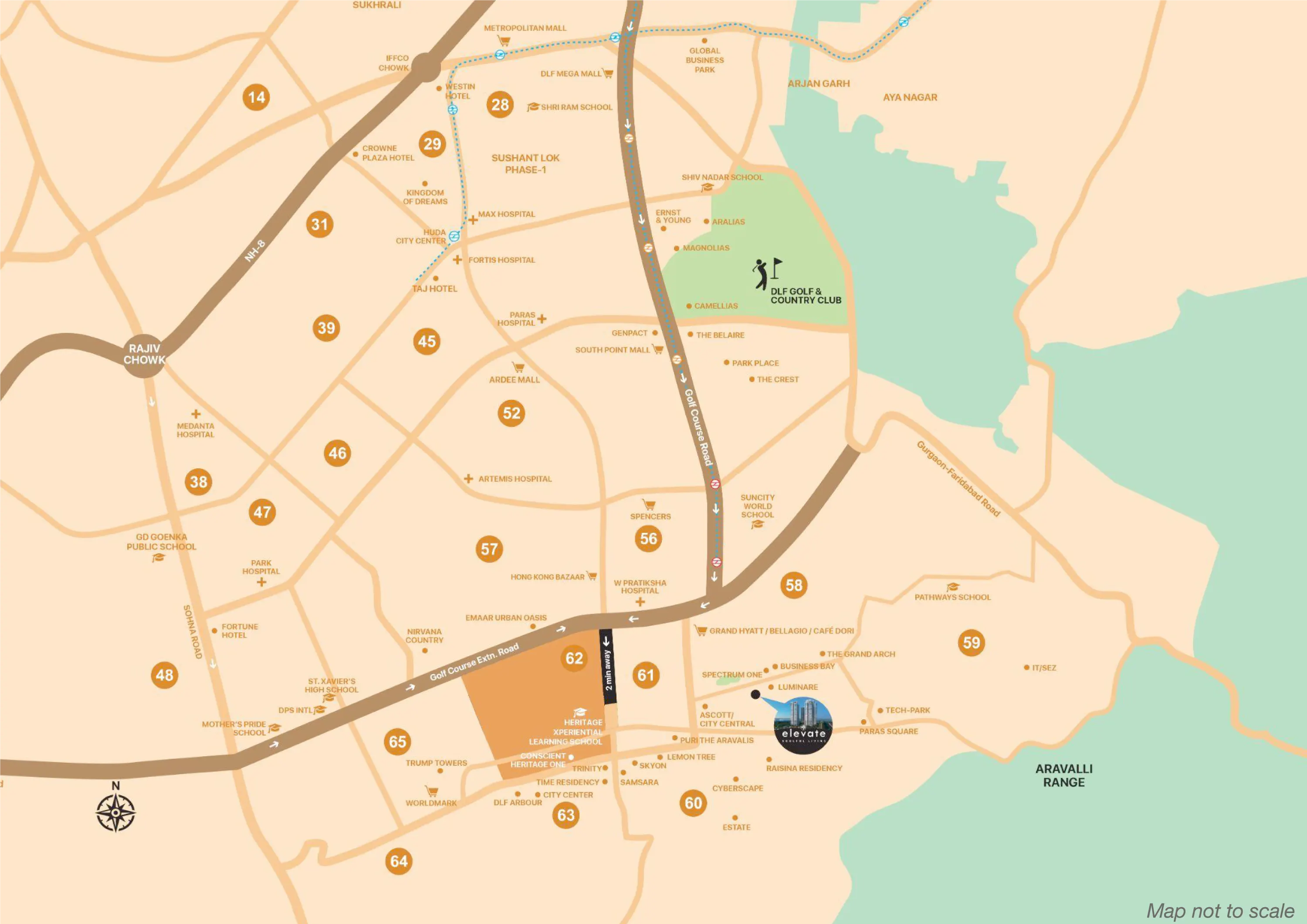Elevate, located in Sector 59, is in the heart of one of Gurgaon’s most prime real estate vectors. Surrounded by established residential and commercial developments, Elevate enjoys superior connectivity through Golf Course Extension Road to Golf Course Road, Sohna Road and NH-8.